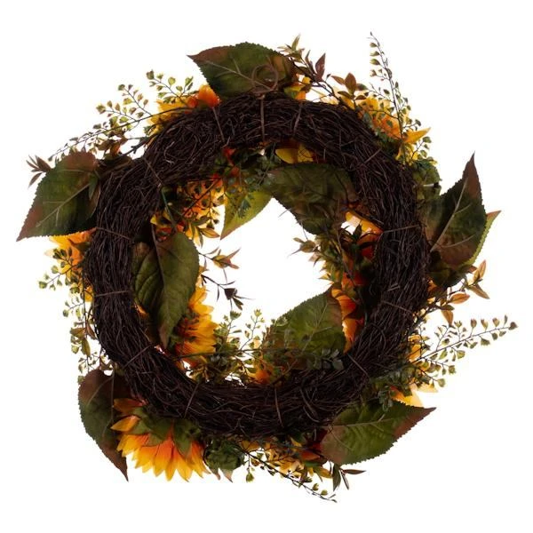 | Manufacturer Description: | 24″ Yellow Sunflower Wreath with Grass (FT210125) |