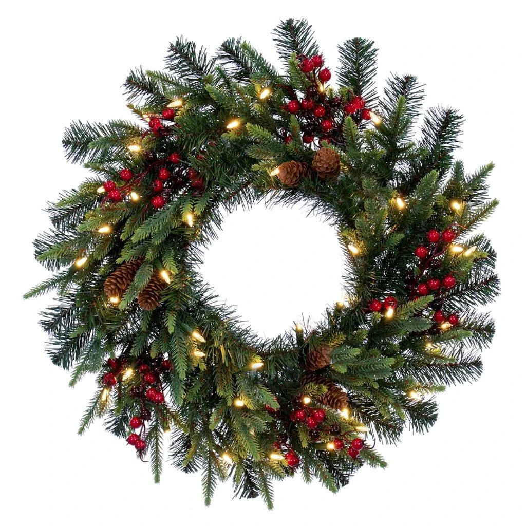 | Manufacturer Description: | 24″ Berry Mixed Pine Wreath DuraLit 50WW (G220625LED) | ||