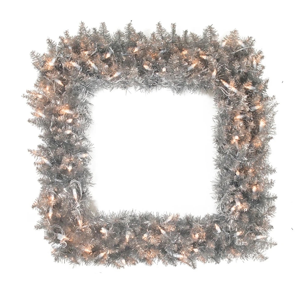 | Manufacturer Description: | 30″ Silver Fir Sq Wreath 350T 70 Clear (K126984) | ||||||