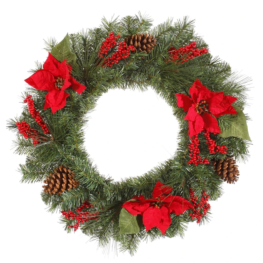 | Manufacturer Description: | 36″ Poinsettia Berry Pine Wreath 100CL (J126837) | ||||||