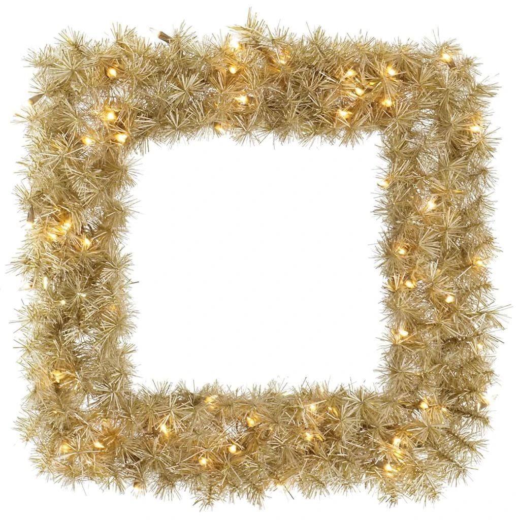 | Manufacturer Description: | 30″ White/Gold Tinsel Sq Wreath 50WW LED (A148168LED) | ||