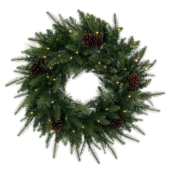 Vickerman Unlit Artificial Christmas Wreath With Pine Cones (383940)